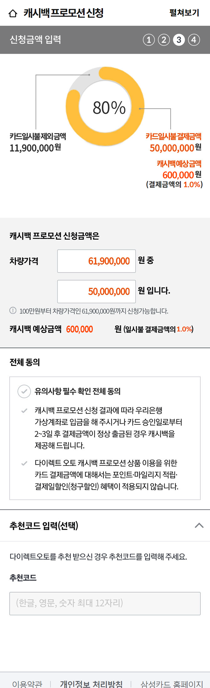 아래 캐시백 프로모션 신청을 눌러 주세요.